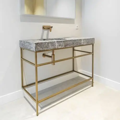 Después de la aplicación, la capa superior metálica puede ser procesada de muchas maneras diferentes. Por ejemplo, se puede lijar, pulir, patinar u oxidar. Encerado, arenado, tratado con lana de acero o lijado con aceite. Las posibilidades son realmente infinitas. Elijas lo que elijas, con un acabado metálico el resultado final es siempre único. Cada diseño es único.
